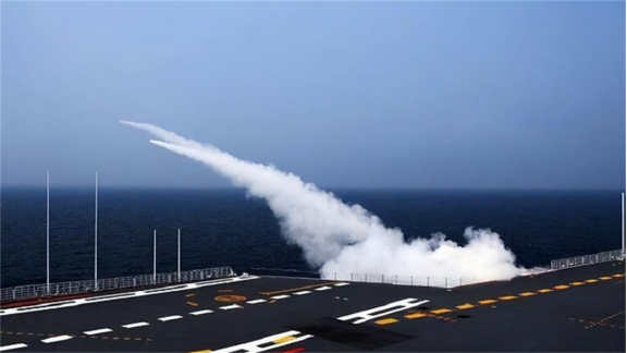 (图解:辽宁号航母发射“海红旗”10近防导弹)
