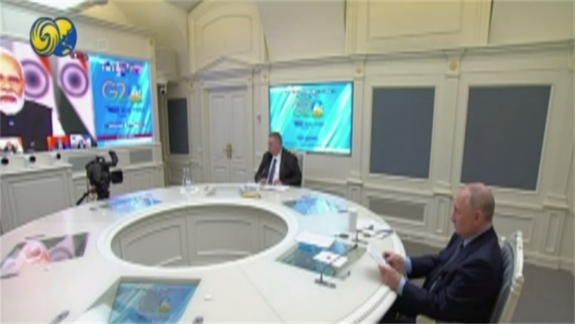 (图解:G20视频峰会上,俄总统普京强调,必须考虑如何结束这场悲剧)
