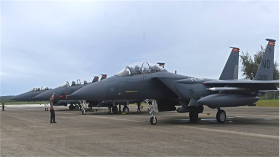 (图解:F-15E战斗机当前已经降落在天宁岛机场上)