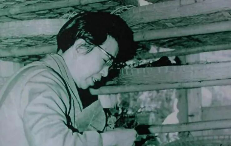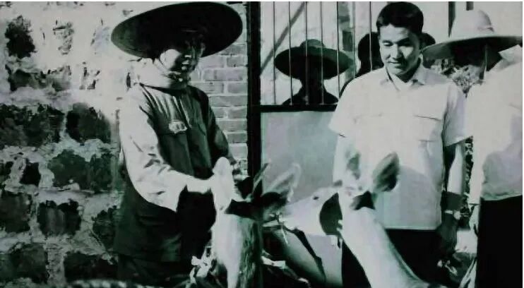 江青参观虎头山牧场的蚕房喂食蚕宝宝