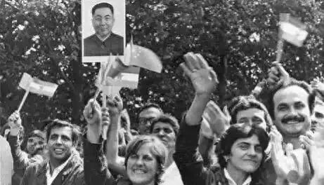 1978年8月25,斯科普里人民在机场道路两旁手举两国国旗热烈欢迎华国锋到访。