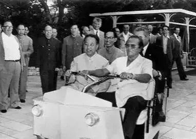 1978年8月27,华国锋乘坐由铁托总统驾驶电瓶车到果园参观。