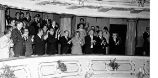 8月21日晚,铁托总统在联邦执委会大厦为华国锋举行盛大的欢迎宴会,宴会上二人互相敬酒。