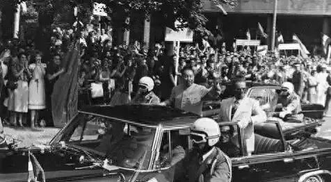 8月22日上午,华国锋在铁托总统陪同下乘坐敞篷车通过市区,受到几十万贝尔格莱德市民的夹道欢迎。