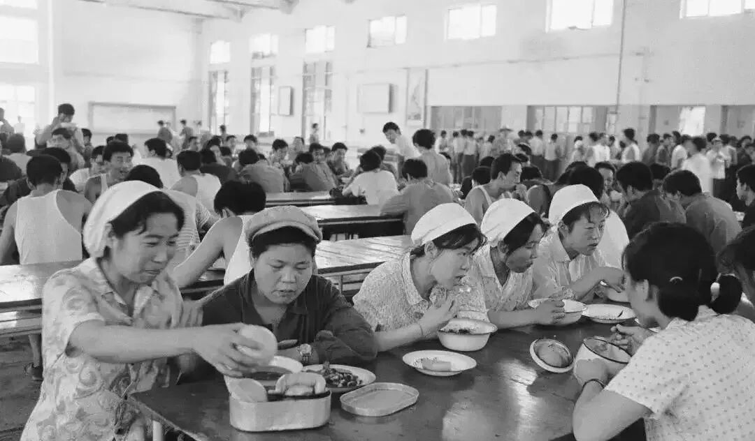 1979年,北京一家国营工厂的食堂,当时人们穿的衣服已经比较时尚了。