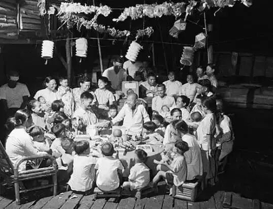 ▼除夕之夜,家人团圆,守岁围炉,温情四溢。这是1953年春节,天津一家人吃团圆饭的场景。