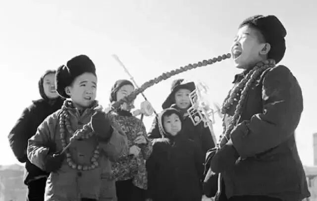 ▼1961年春节,北京逛厂甸庙会,孩子们最感兴趣的是大串糖葫芦。