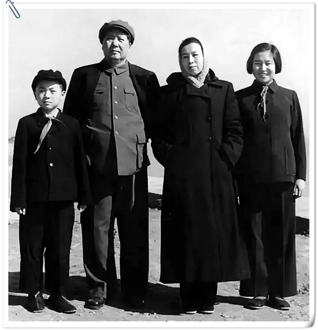 在这张珍贵的照片中,主席和江青带着李讷和毛远新,留下了难忘的瞬间。
