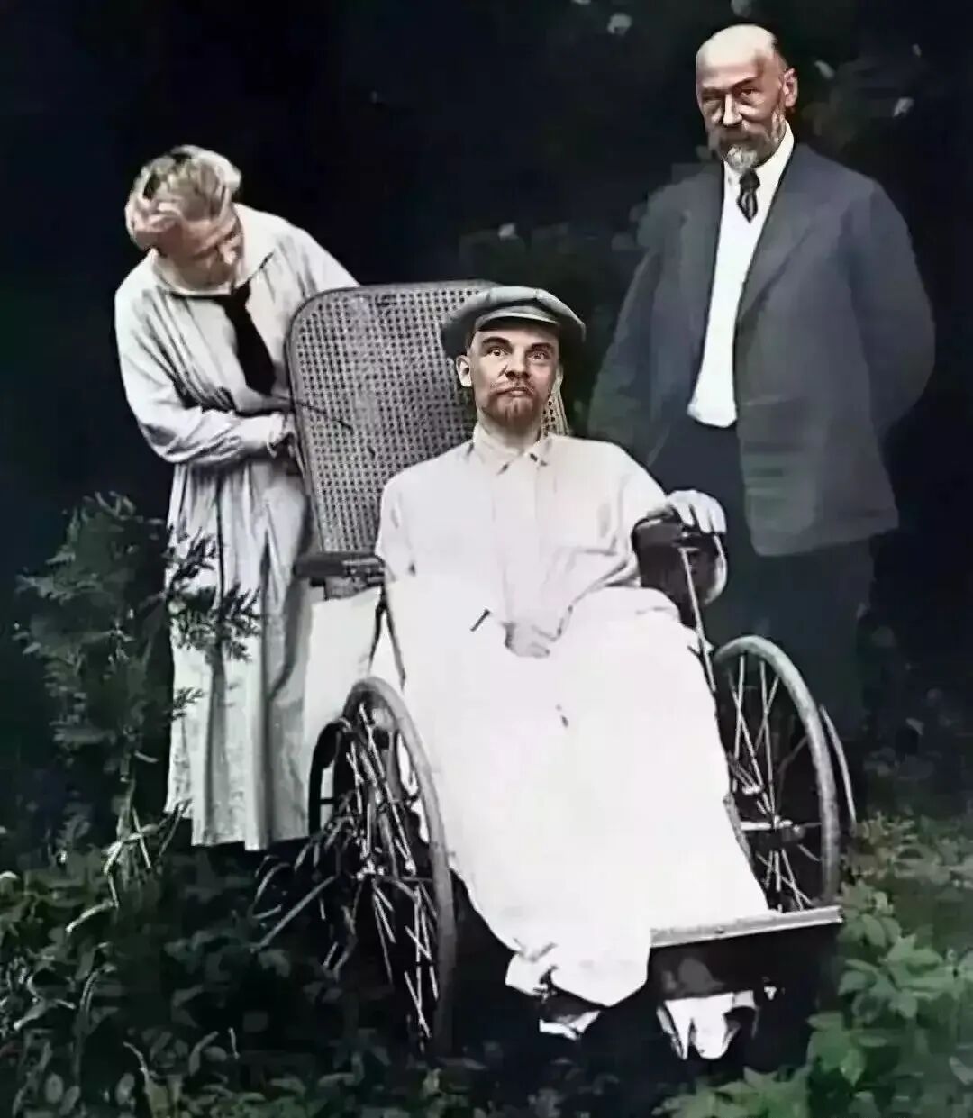 1924年,列宁坐在轮椅上,留下了他生命中的最后一张照片,此时的他已经身患重病,身体状况极为差,几次中风使得他的语言能力受到严重损害,变得骨瘦嶙峋。他看起来疲惫不堪,仿佛已经油尽灯枯。在亲人的陪伴下,无法再像以前那样展现出强大的生命力。