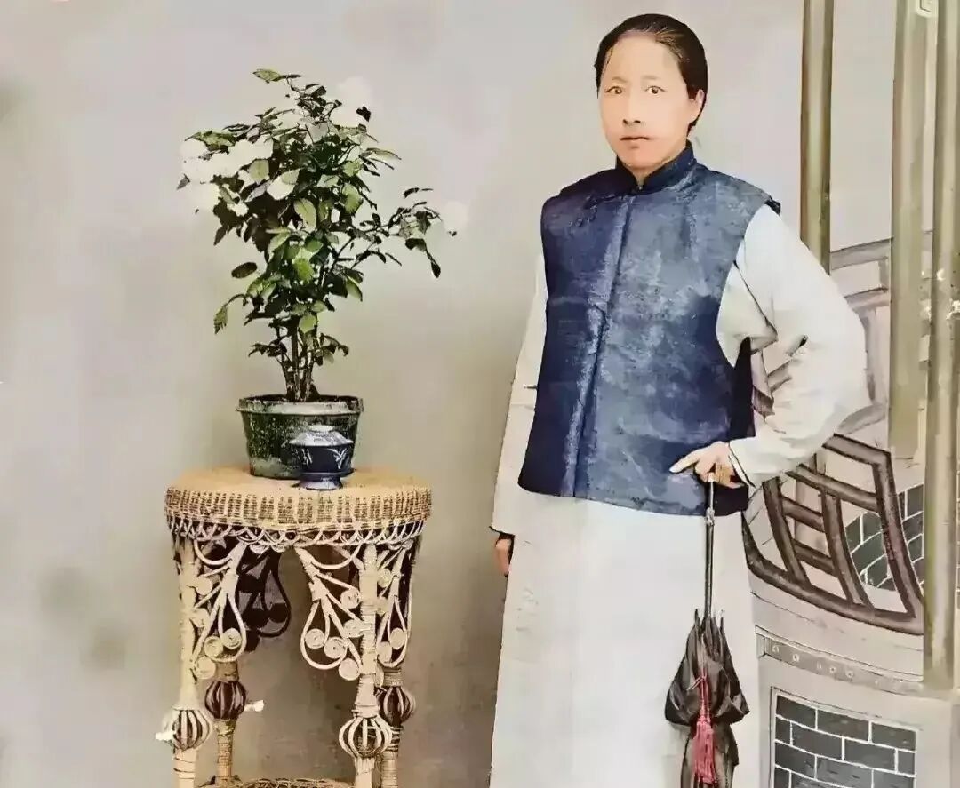 1907年,秋瑾站在摄像机前,留下了她生前的最后一张照片,她穿着长袍马褂,手里紧紧握着一把雨伞。她的眼神坚定而果敢,仿佛在向世界展示她的勇气和决心。这张照片让人们看到了一个坚强、无畏的女性形象,而这张照片拍摄后不久,秋瑾就参与了安庆起义,最终她被清军处决于浙江绍兴轩亭口。