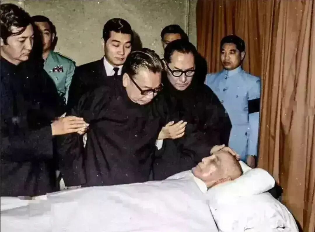 1975年4月,蒋中正留下的最后一张照片,镜头中的他,面容憔悴,身形瘦弱,显然是疾病缠身的体现,他的两个儿子,肃穆地站在他的旁边,他们的眼神中充满了对父亲的眷恋和不舍,因为就在几十分钟前,蒋中正咽下了他生命的最后一口气。