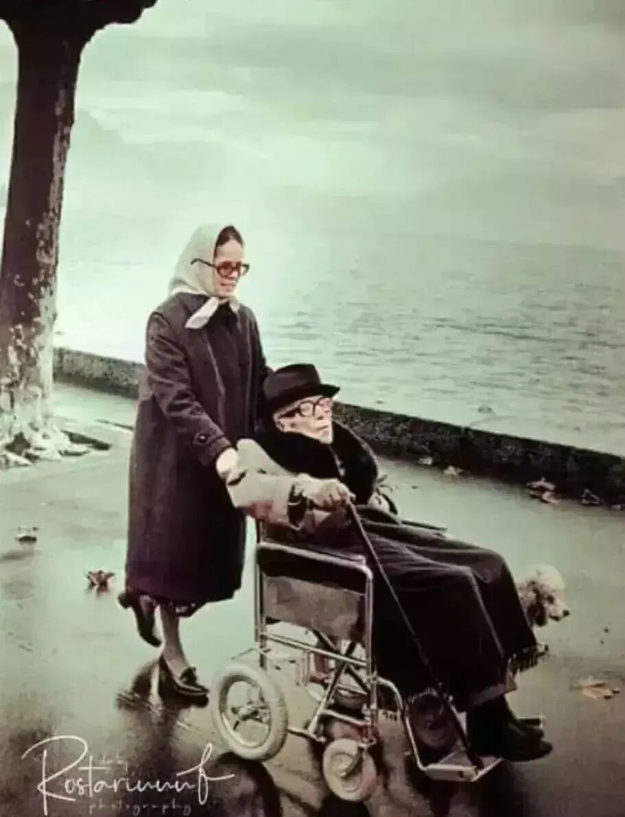 1977年,身患重病的卓别林,在家人的陪伴下外出散步,这一幕成为了卓别林留在人世间的最后影像,因为没过多久他就去世了。