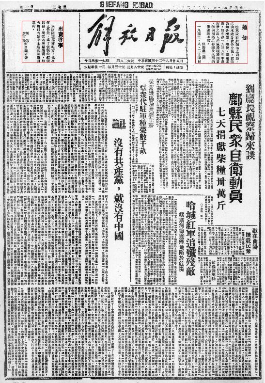 1943年8月25日,《解放日报》发表社论《没有共产党,就没有中国》。