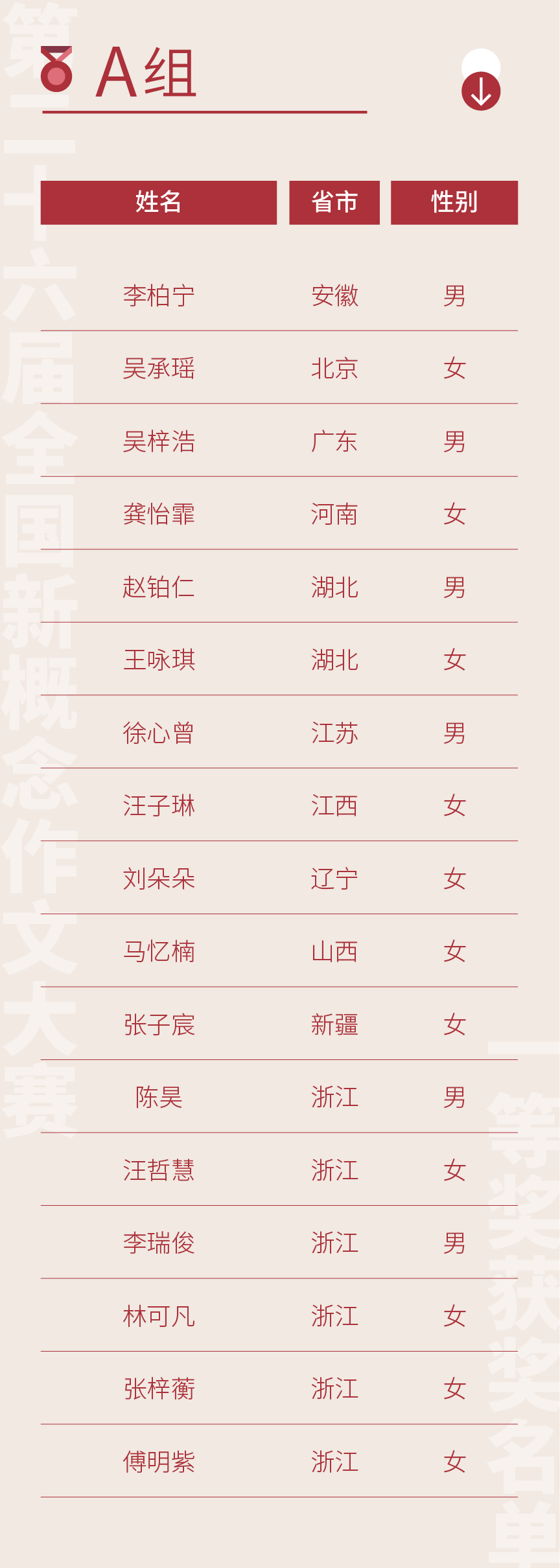 “新闻晨报·周到”杯第二十六届全国新概念作文大赛一等奖获奖名单