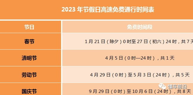 免费通行时间段:2023年9月29日00:00-10月6日24:00