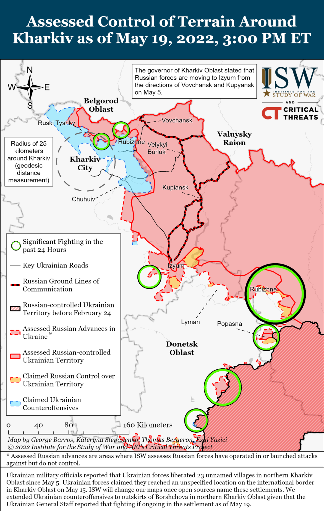 根据ISW(战争研究所)的战报,乌军在哈尔科夫的反攻成功,乌军将俄军赶出了哈尔科夫近郊,并将一部分战线推进到了俄罗斯边境。俄军似乎放弃了哈尔科夫,并将附近的兵力调到顿涅茨克州。ISW称,俄军持续遭受后备兵力短缺的困境,导致俄军已经不再以营级战术群(BTG)行动,而是以连队为单位出击,俄军不再寻求攻击大城市,而是占领附近的村庄。