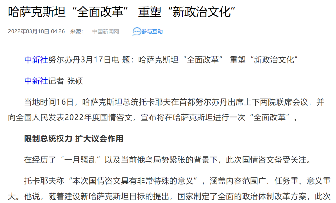 哈萨克斯坦的托卡耶夫也是普京扶持,但在俄乌战争爆发后突然开启民主改革,称要还政于民,加强分权机制,加强法治,走出纳扎尔巴耶夫的强人政治。