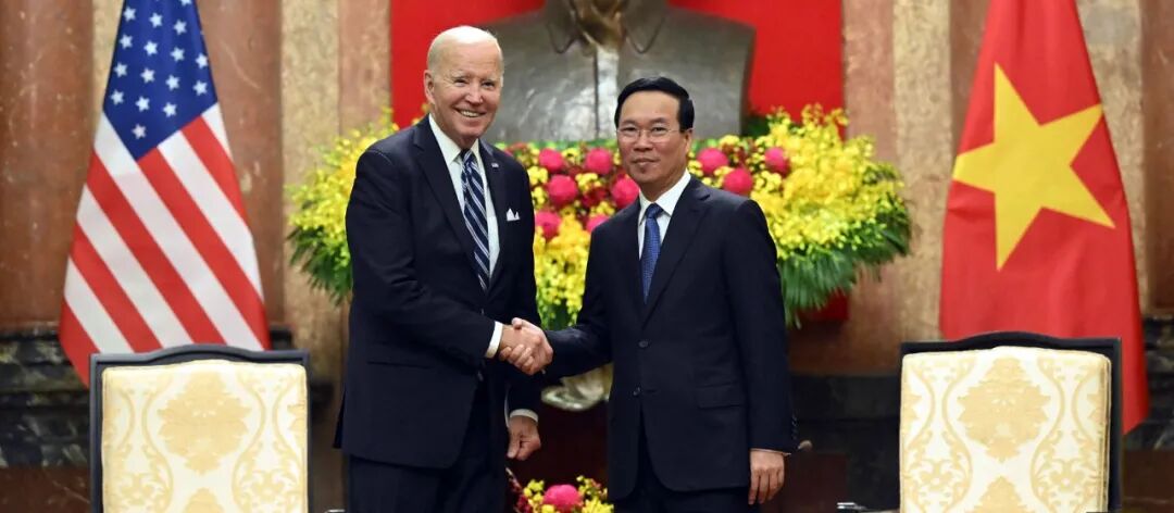 9月11日,拜登访越,宣布美国与越南正式建立全面战略伙伴关系,代表着两国关系的一次重大升级,此前,越南只和四个国家建立了全面战略伙伴关系,分别是中国、俄罗斯、印度和韩国。