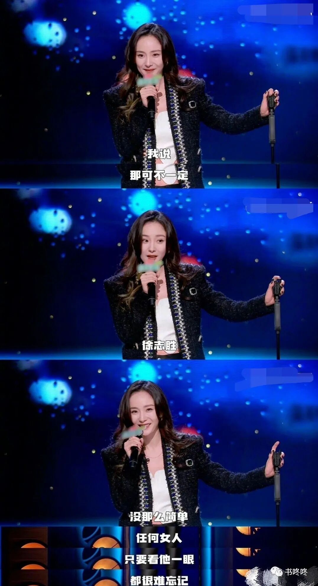 某节目上,杨幂公开表示“徐志胜没那么简单,任何女人只要看他一眼,就很难忘记”。