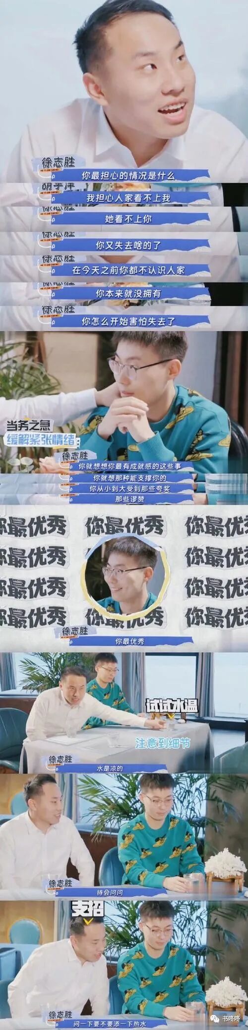 当对方伤心时,他再次展示自己的高情商,“妹妹你一定要记住一件事,无论什么事让你不开心,一定不要把这个错怪在自己身上”。