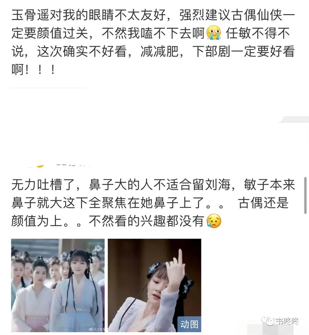 不料另一个可能影响观感的问题很快被抛了出来,就是女主朱颜的扮演者任敏的颜值问题。