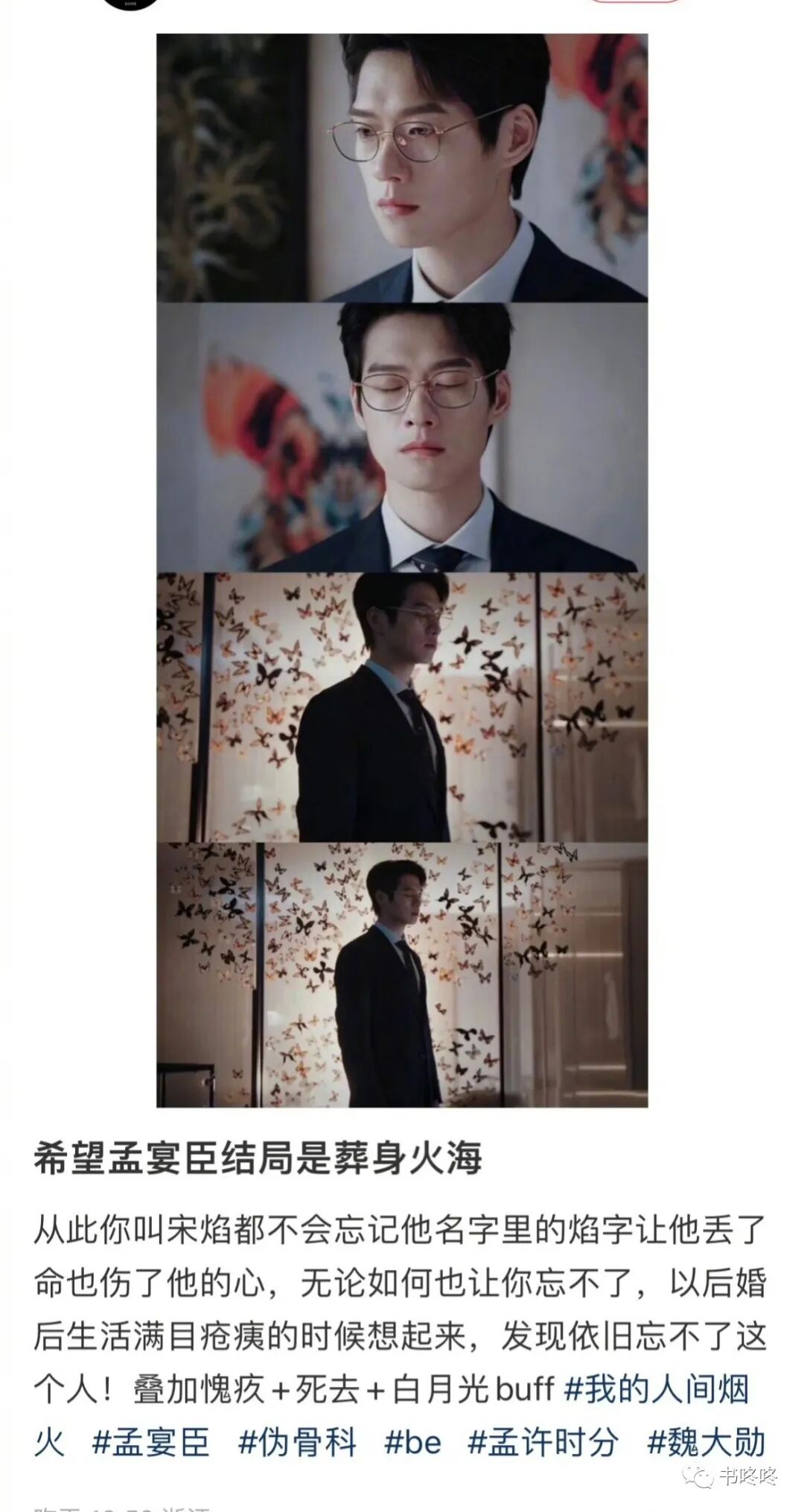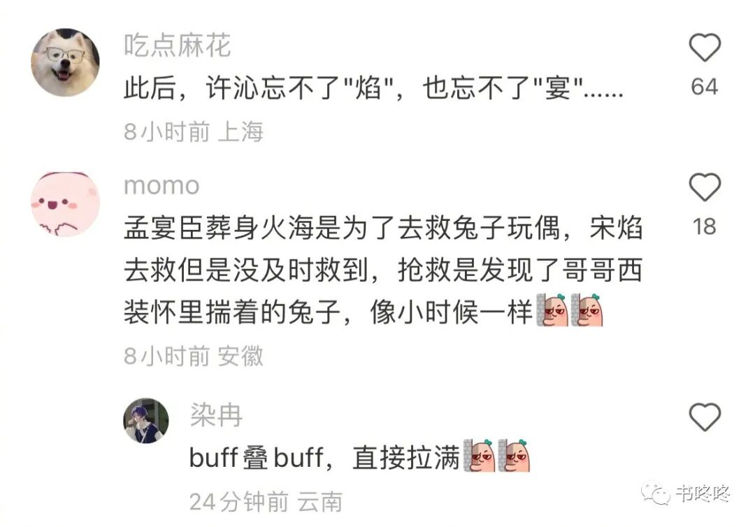 不知道是听到“孟宴臣最后葬身火海”的谣言了,还是观众磕“孟许时分”磕的走火入魔了,大家纷纷写起了小作文。