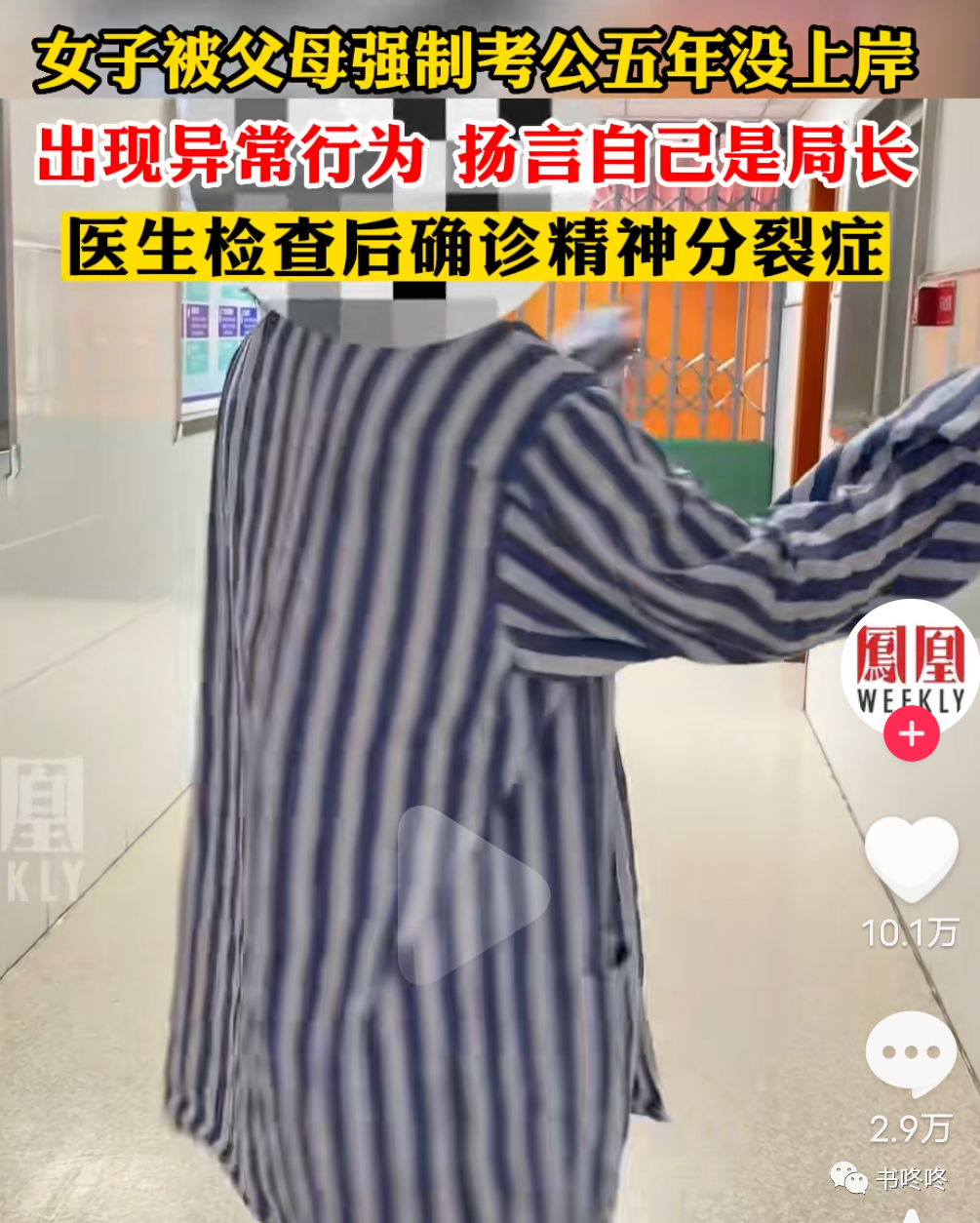 可惜这位“范进”没有中举,已经疯了。在这个女孩疯之前,她已经在家人的强烈要求下考了5年的公务员。