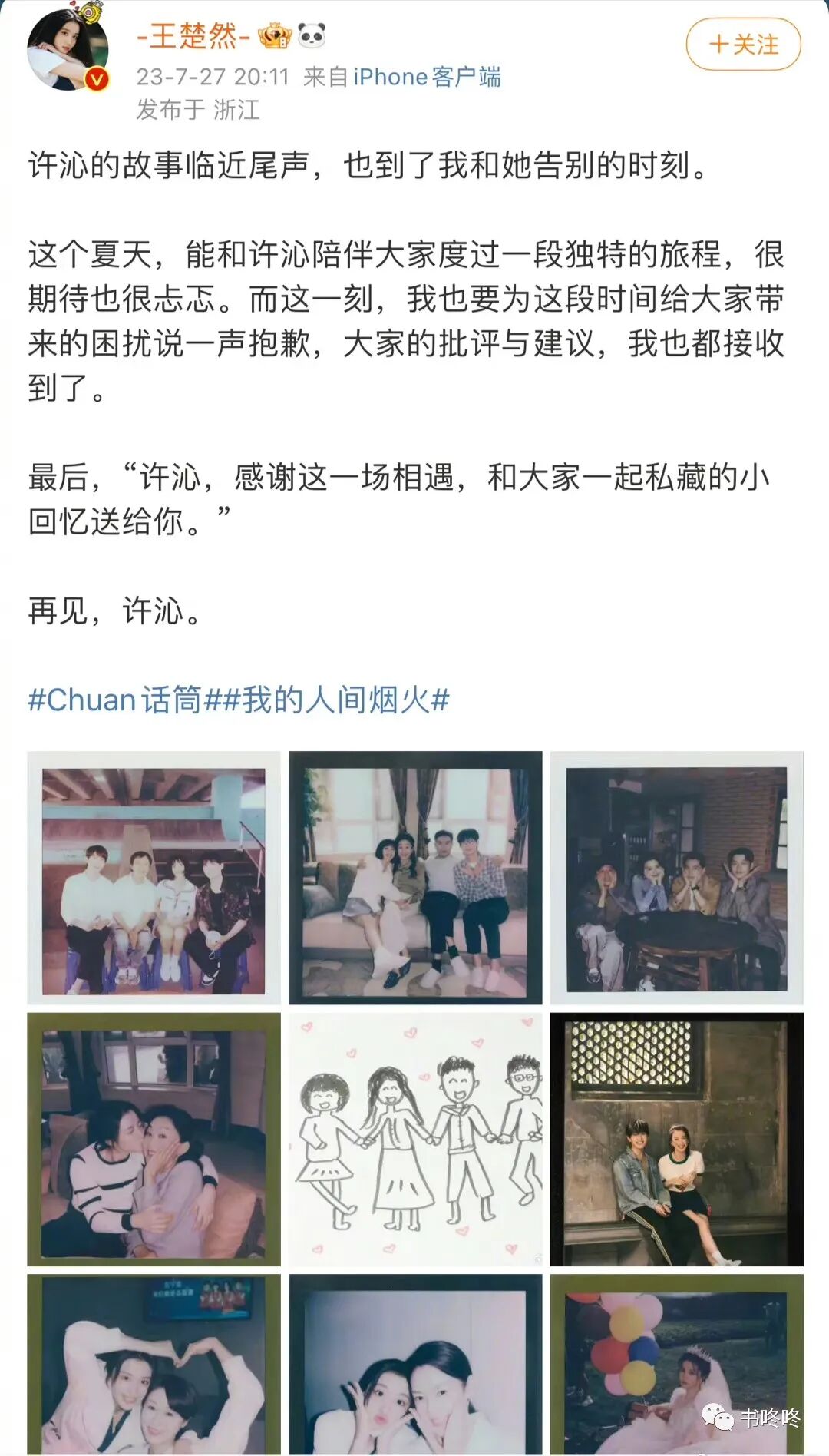 别人剧播完都是感谢剧组感谢导演感谢角色,一大篇文字表示自己的拍戏感受和对角色的理解。