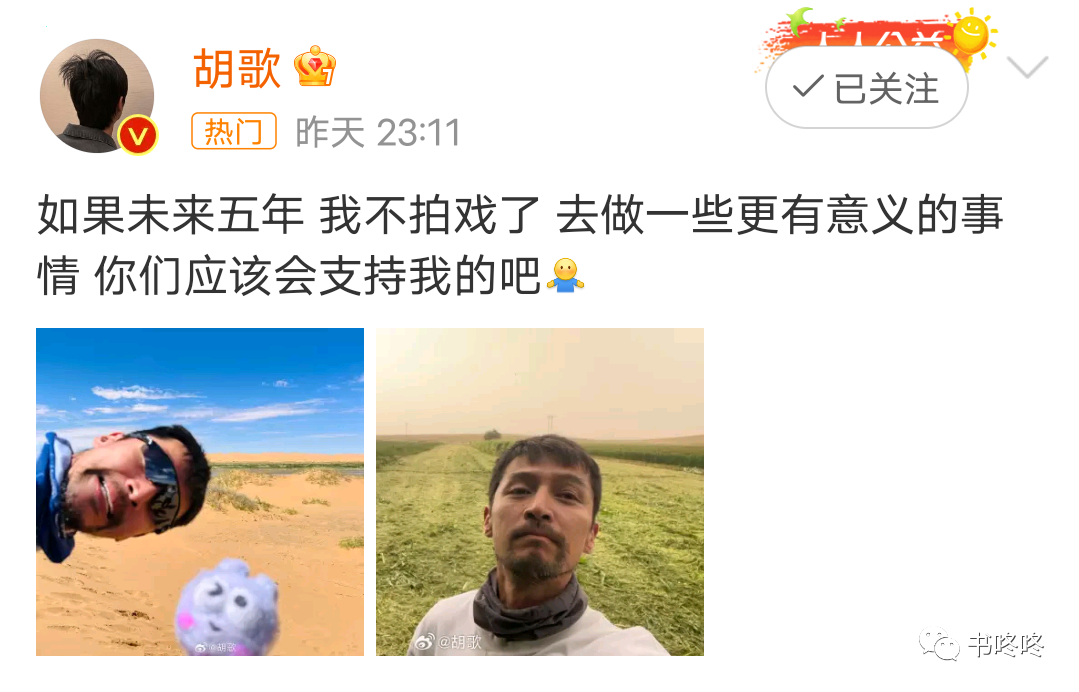 胡歌公开回应近期争议,“本以为可以在微博倾诉,但看来不是”