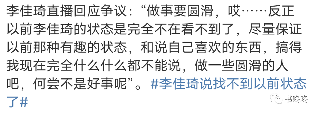 还在直播间“阴阳怪气”的说“要圆滑一点......我回不到之前的状态了......我争取让自己更有趣一点......”。