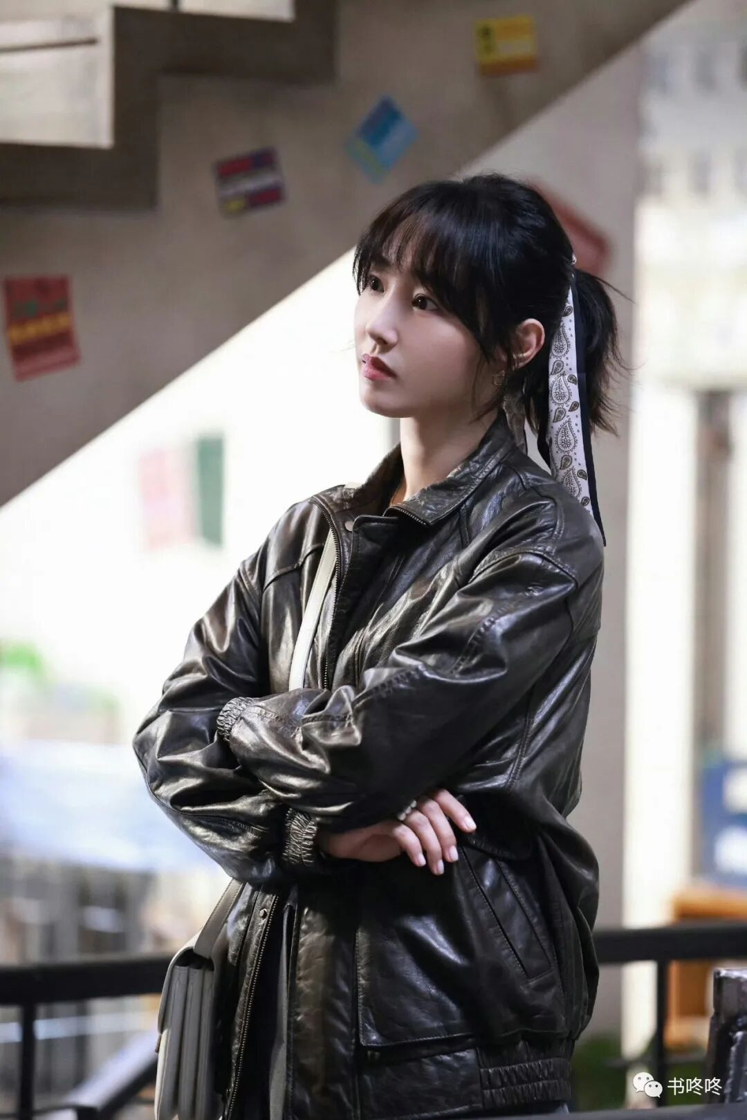 找前夫谈离婚这段,她穿了一件黑色的廓形皮衣,全身颜色有些暗沉,便搭配了一个颜色鲜亮的包。