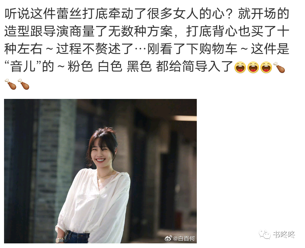比如她其中有一套白衬衣+牛仔裤的搭配,受到了许多女性观众的喜爱。