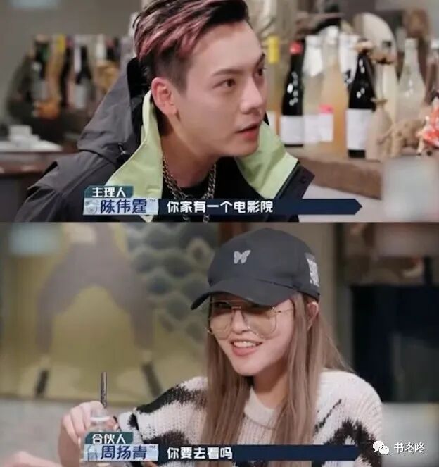 第一次上综艺节目,她全程发问,比如说到家里有电影院的时候,她很平常的问了陈伟霆一句“你家里没有吗?”