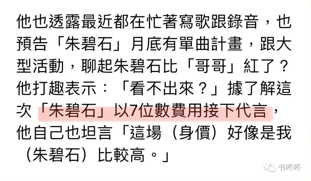 不过罗的“疯”也是有成效的,网传他用朱碧石的名义接到了七位数的代言。