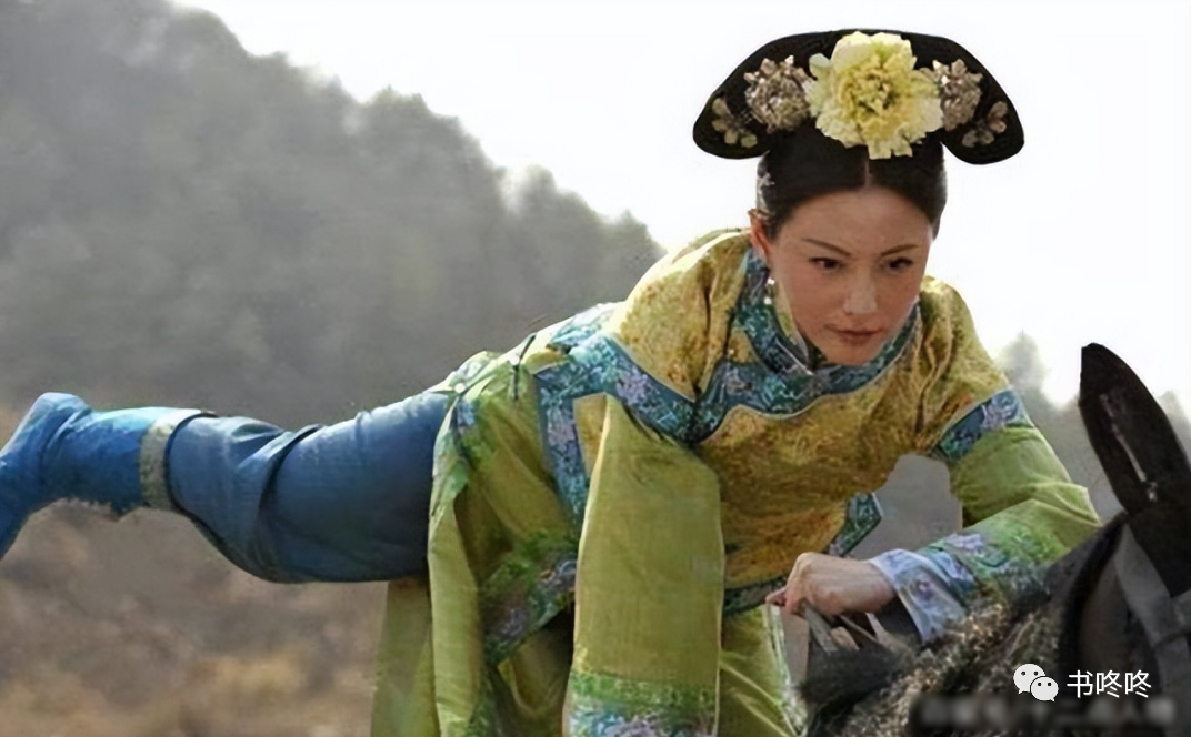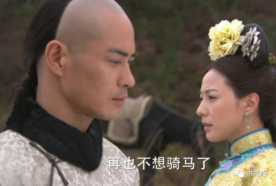 剧中有一个镜头,明玉为难若曦,说是要跟她比赛马术,但是此时的若曦是穿越过来的,根本就不会骑马呀。