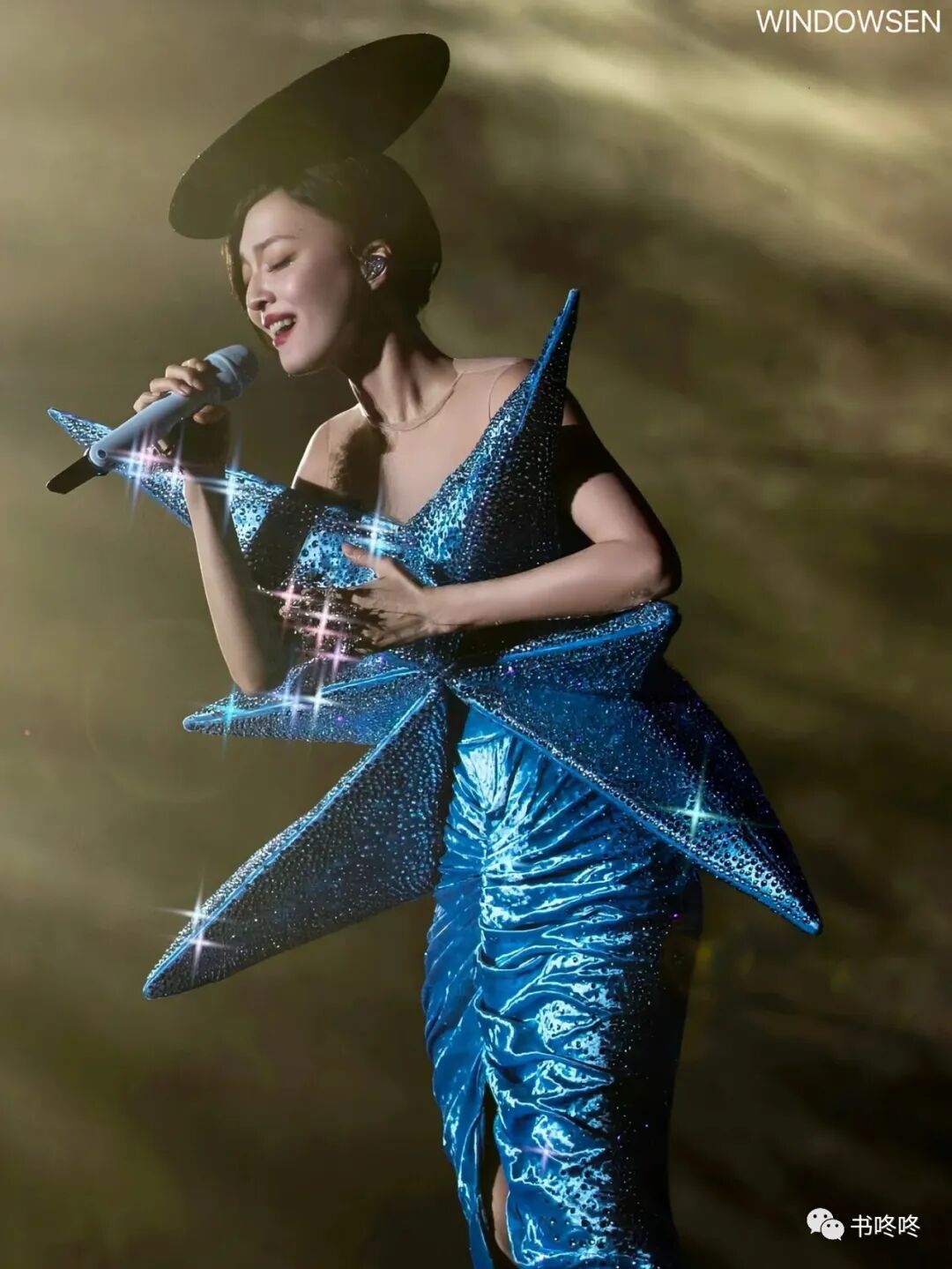 她的造型以亮片居多,最大程度的凸显本人的灵气。