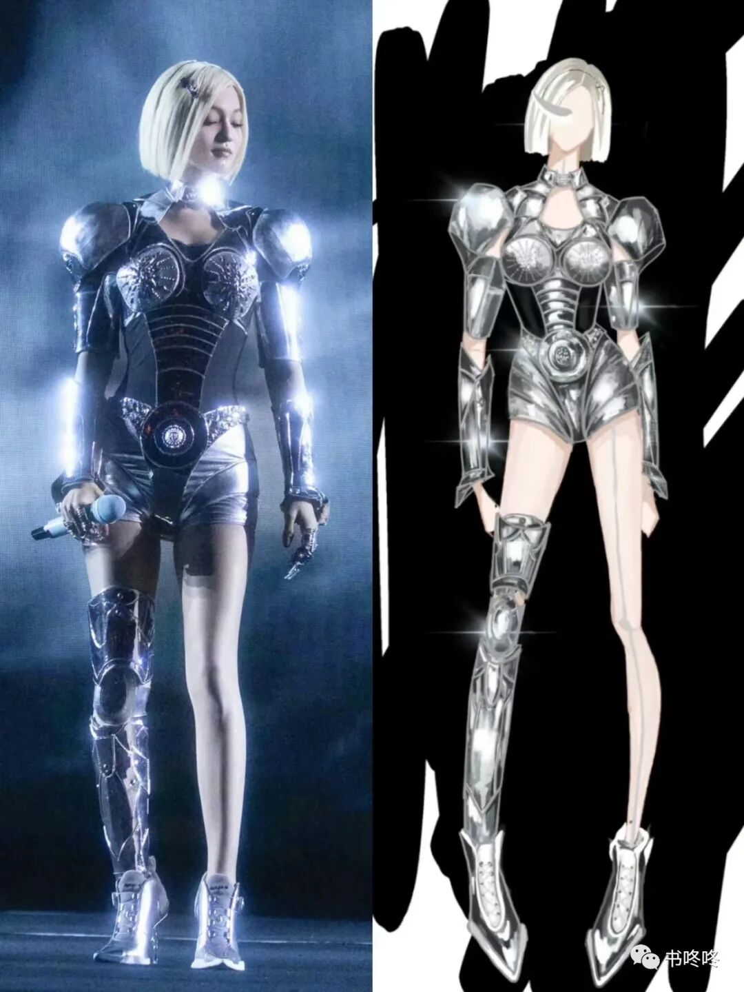 我们可以看到,她的许多服装风格都多了一些科技风,配上一张建模脸,仿佛是一个AI人。