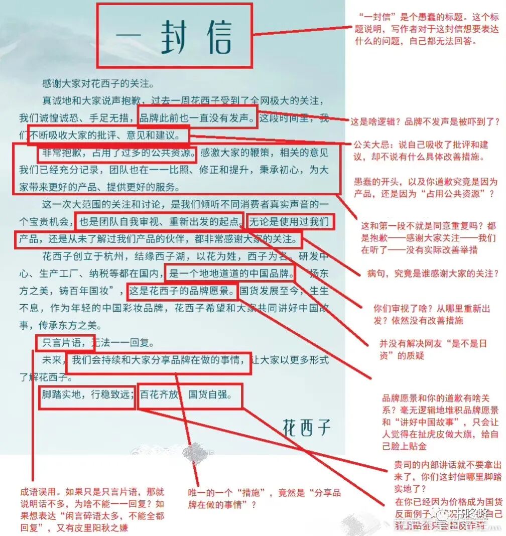 还有热心网友贴心解读了花西子方这一文案,逐步解读之后才发现,它们似乎依旧没有意识到引起公愤的点。