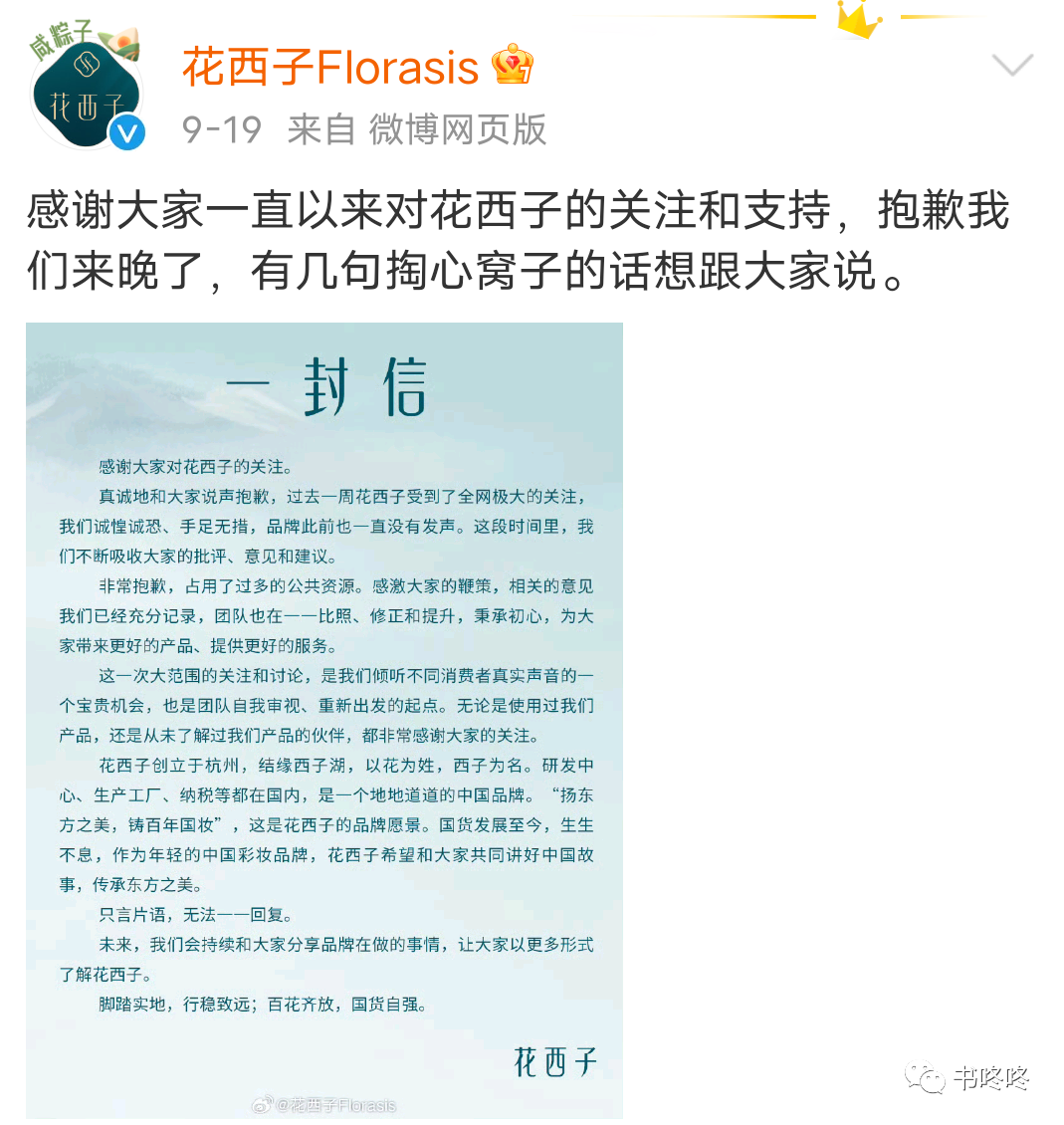 花西子品牌方经历了连续几天的“被网暴”,花重金请到的运营公关团队,终于费劲吧啦攒成了一篇文案。