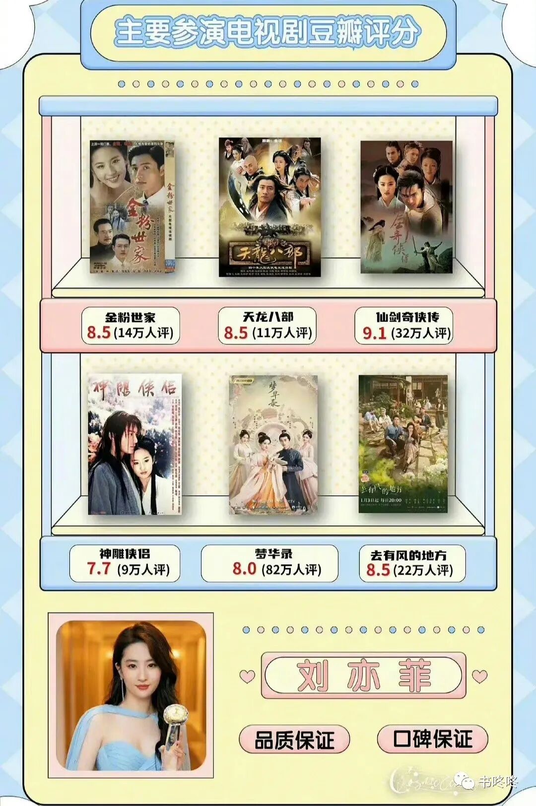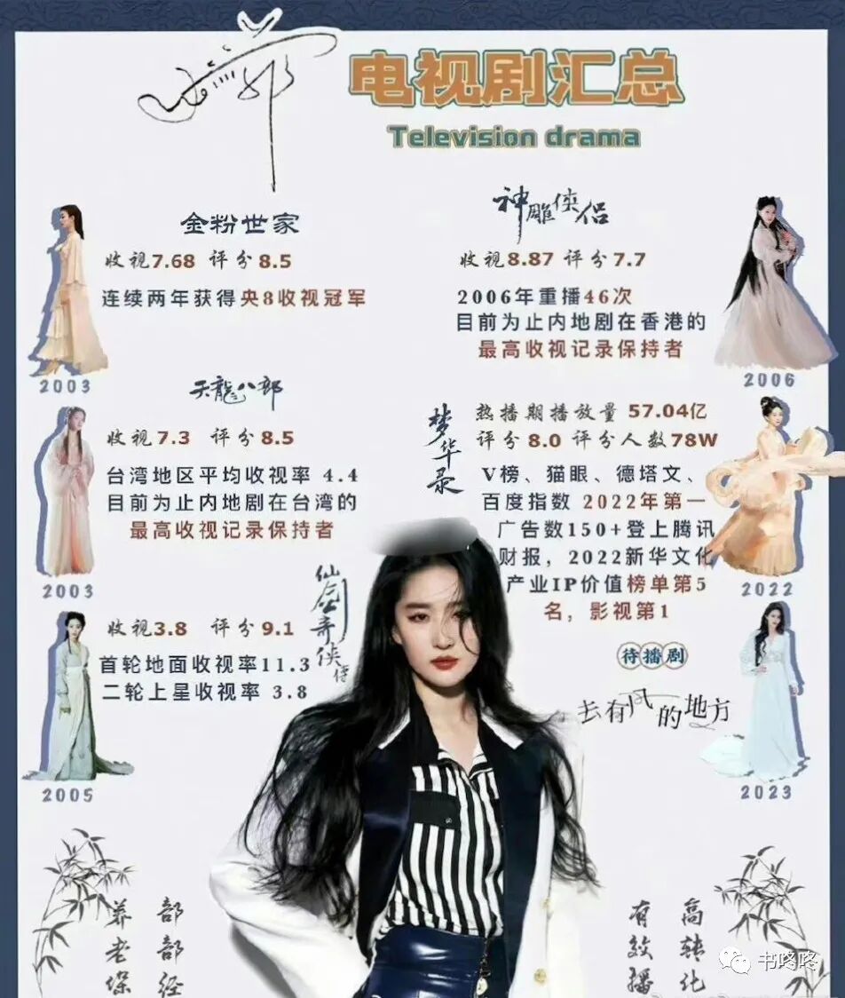 可是看她演过的作品,《金粉世家》《仙剑奇侠传》《天龙八部》《神雕侠侣》《梦华录》等,全部都是大爆剧。