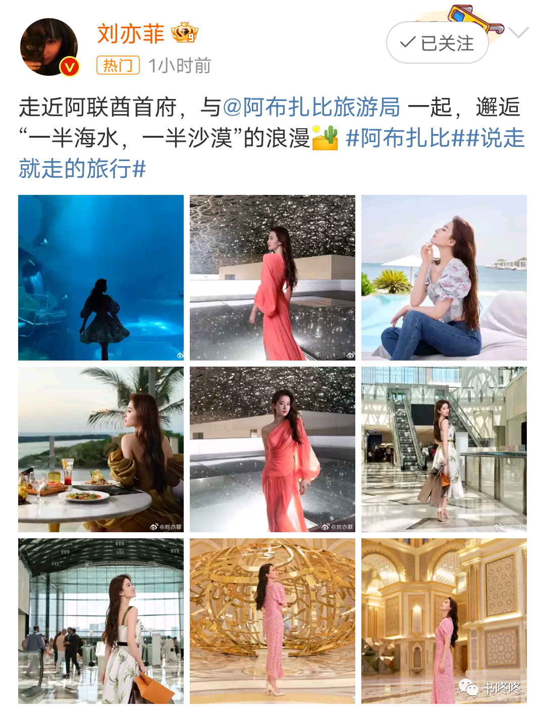 她刚刚官宣了代言“阿布扎比”,title就是Chinese actress(中国女演员)。