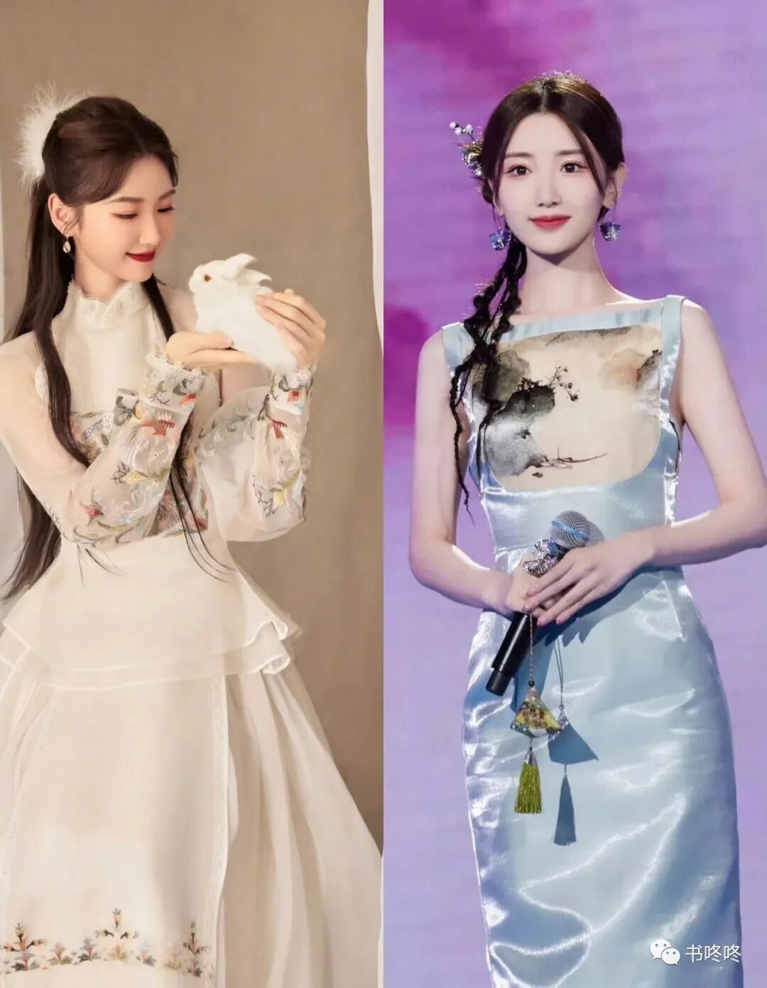 大部分艺人登上央视节目,都会选择更加端正素雅的服饰,新中式就是最好的选择。