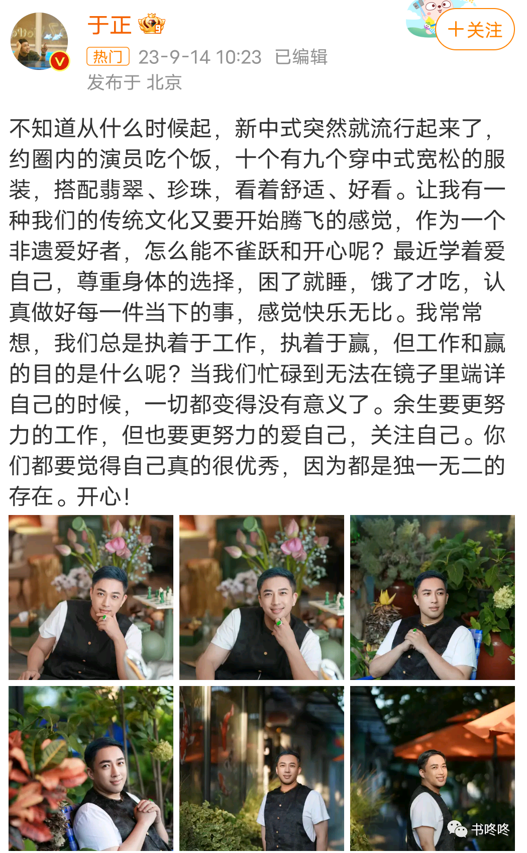 作为内娱最爱蹭的于正老师,在杨幂的新中式火了之后,也发了一组照片。