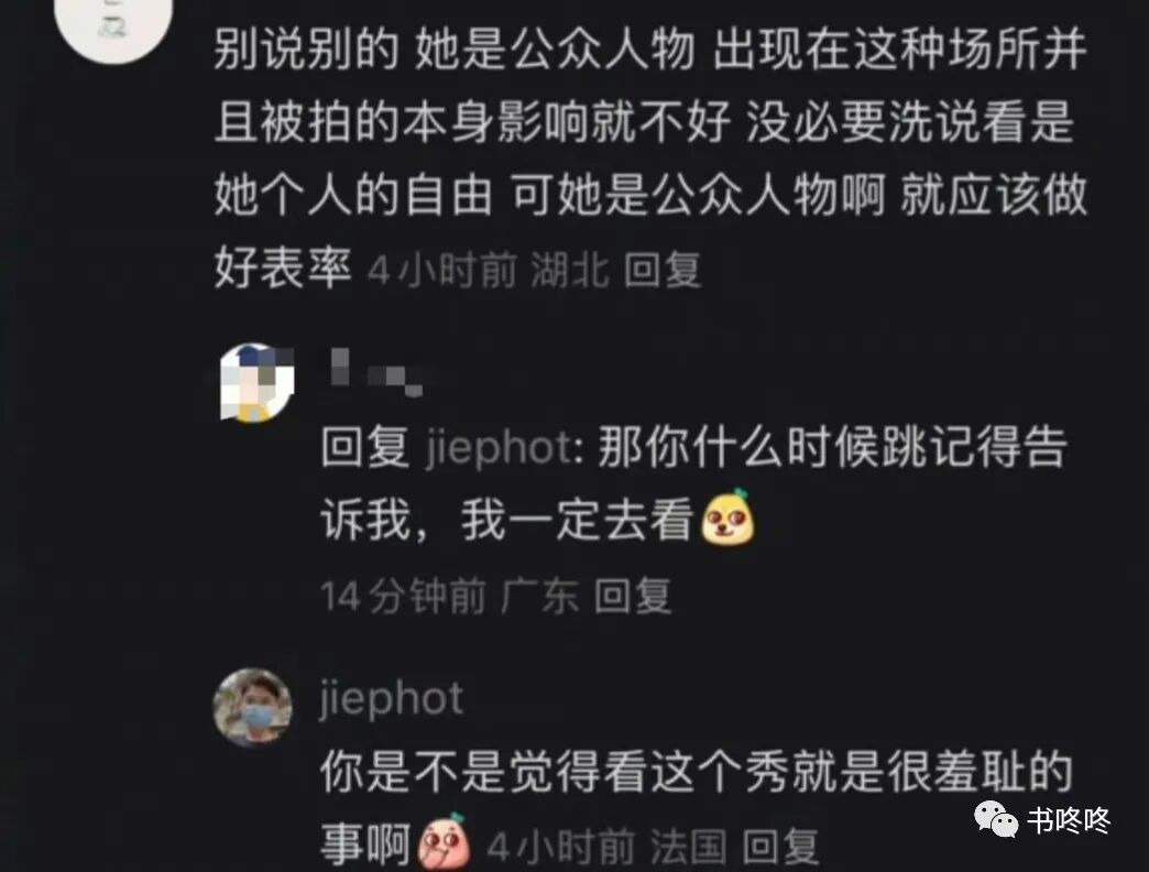 而她的摄影师看到观众质疑的声音,还在下面质问网友“你是不是觉得看这个秀是很羞耻的事啊”。