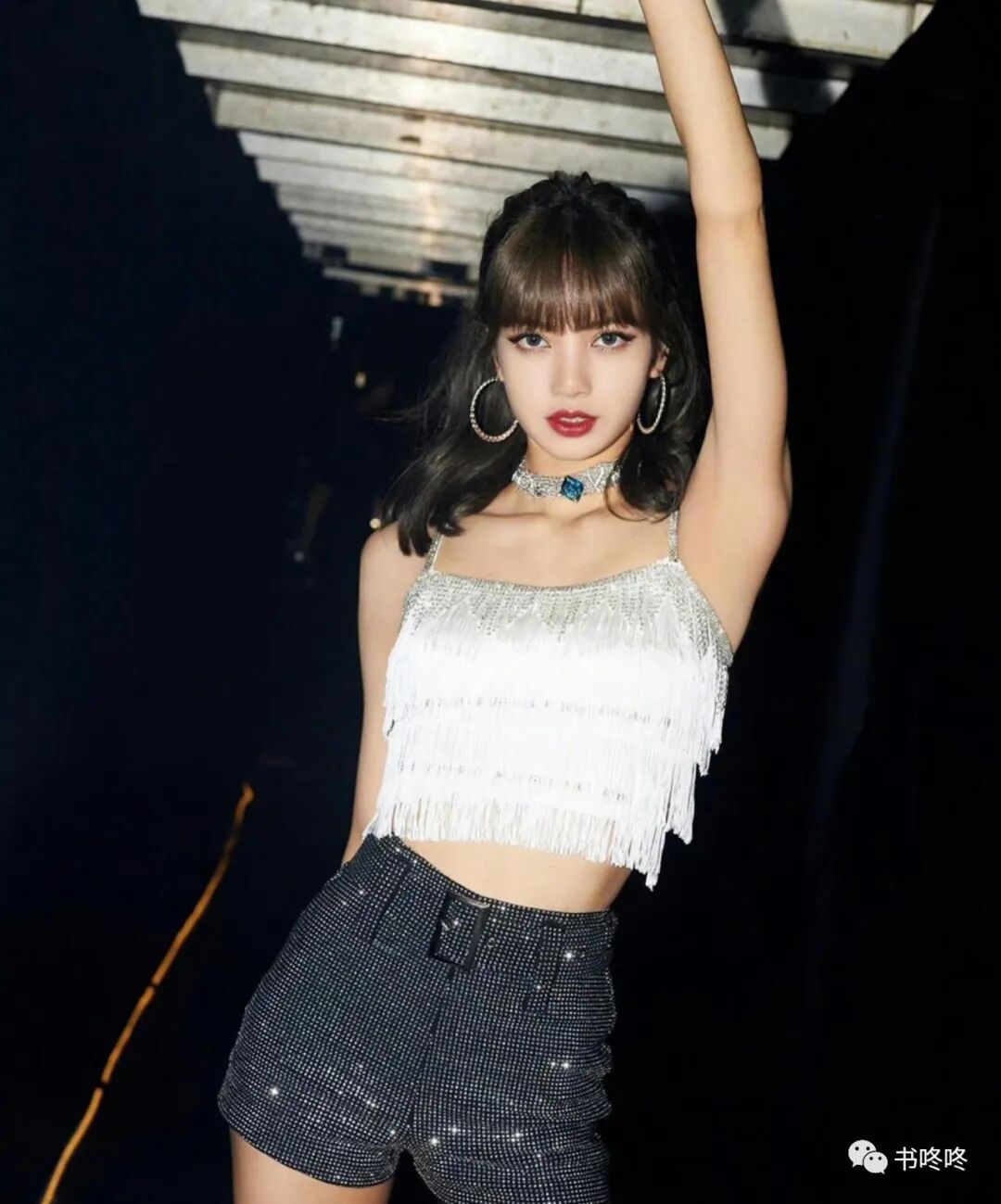 根据放出的图片看,Lisa穿着清凉,但是重点部位都穿着衣服。