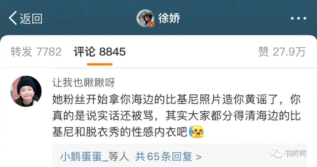 当然因为她之前发过自己拍的一组比基尼照片,当时好多人说她穿着太暴露。