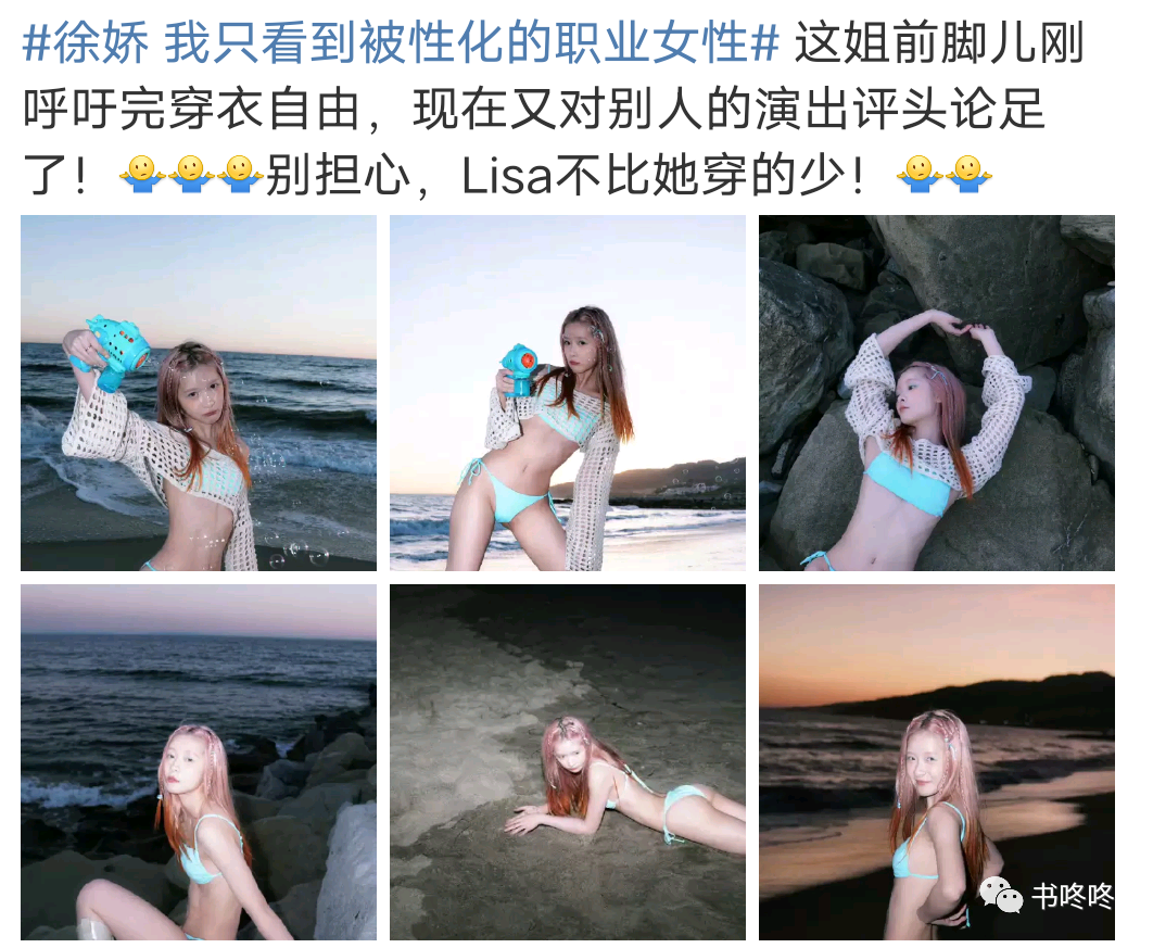 徐娇的穿衣自由,是在合适的场景下穿合适的衣服,她在海边不穿比基尼穿什么?