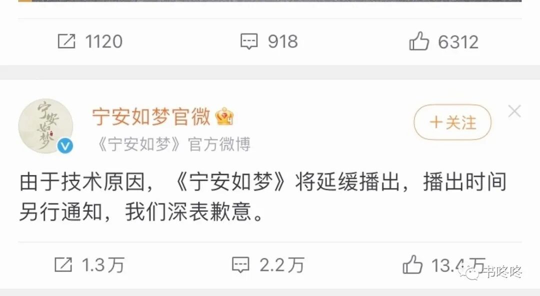 因为男三的关系,白鹿的《宁安如梦》也被埋了。