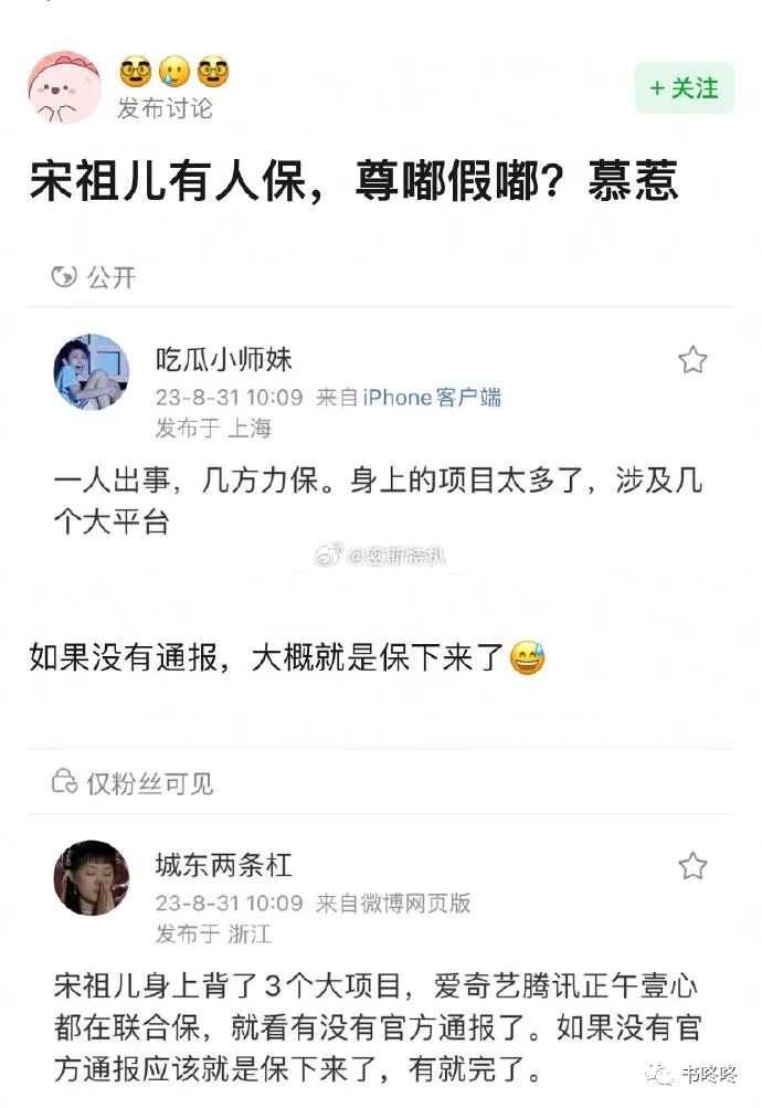 当然也有消息说是宋祖儿被保下来了,《无忧渡》可能正常播出。