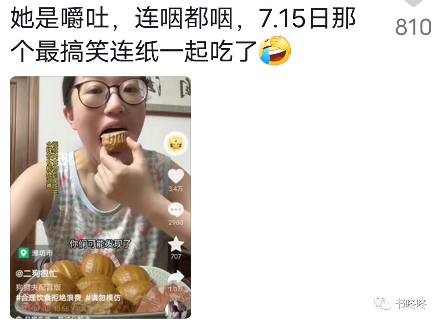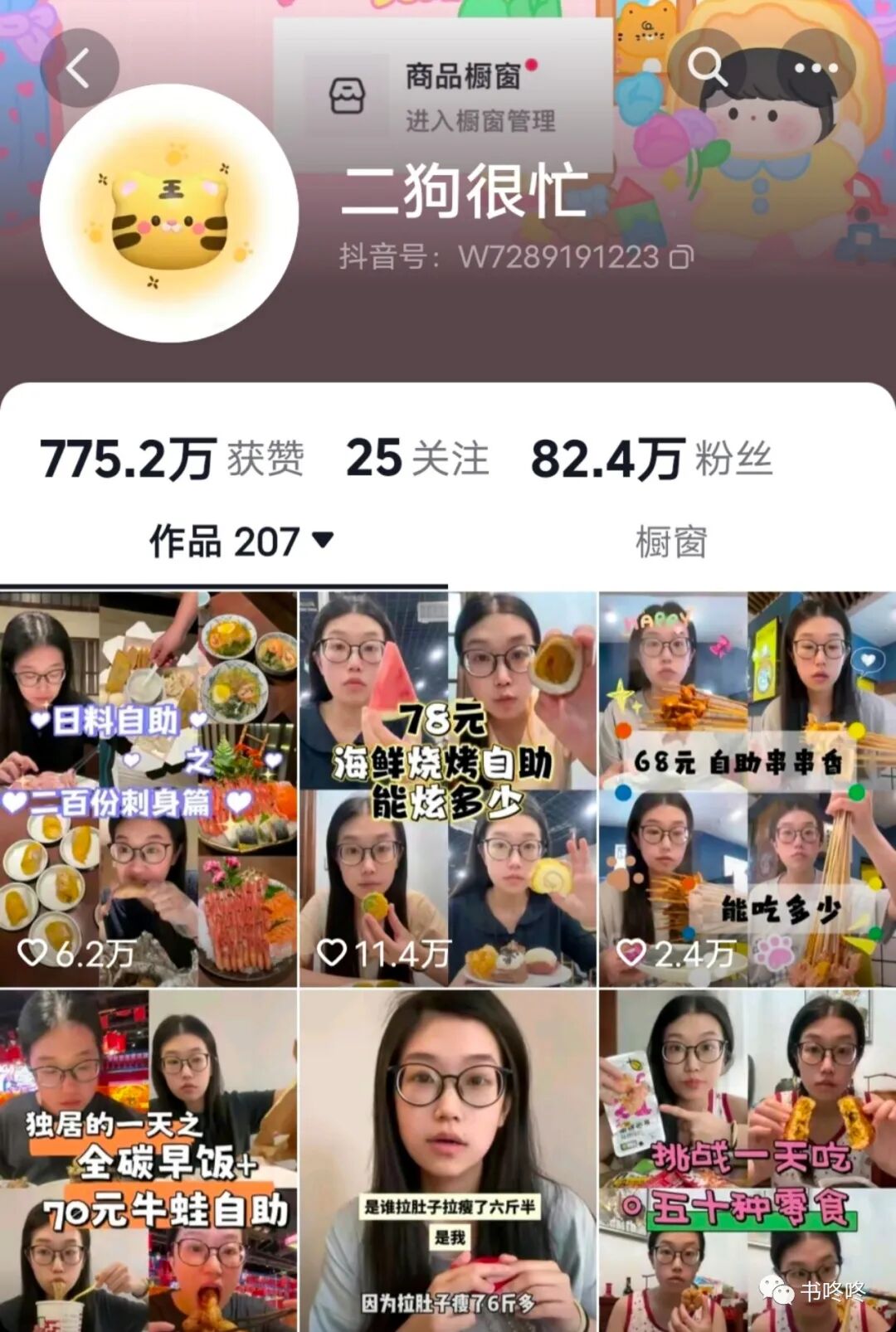 其实最开始就有人发现过二狗很忙在假吃、在嚼吐,但是那时候她视频下面一堆“接代谢”的死忠粉,都被这种超高的代谢能力蛊惑着。